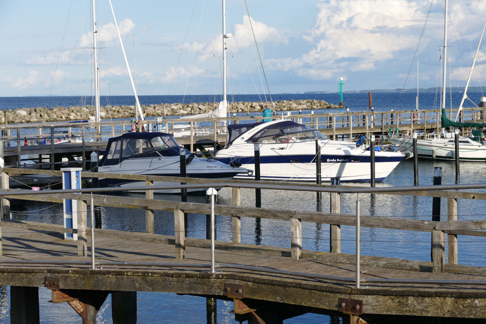 Ein Hundestrand ist etwa 600 Meter vom Haus entfernt in nördlicher Richtung zum Schubystrand, der andere befindet sich südlich des Yachthafens in etwa einem Kilometer Entfernung.
